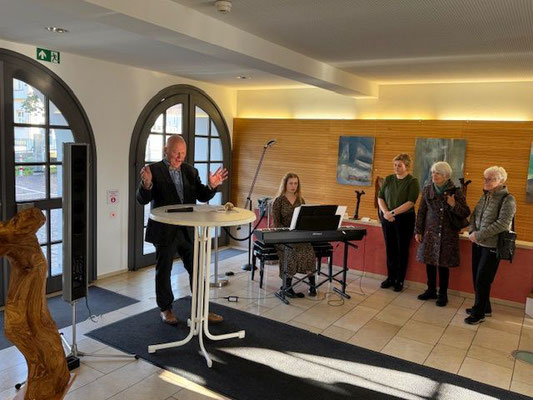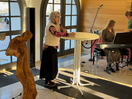 Begleitend zur Aufstellung der Wasserhüterin auf der Rottuminsel in Ochsenhausen wurde am 01.10.2025 im Rathaus die Ausstellung Skulpturen und Bilder der Künstlerin Theresia K. Moosherr feierlich durch Bürgermeister Philipp Bürkle eröffnet.
